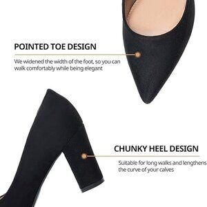 Women's Chunky Block Closed Toe Heels,Slip On Work /Dress shoes (Black PU)
