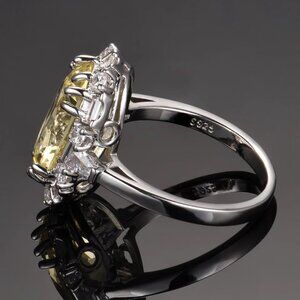 ☆ Women's Brand New Chunky Citrine Ring with an Oval Cut and Baguette Accent Stones. ☆ This lab-created stone has the ultimate sparkle and shine; it's placed in a shiny .925 Sterling Silver Setting with a Rhodium overlay for shine and protection (true to pics) Don't let the price fool you, these are nice quality, we are just selling all of them!