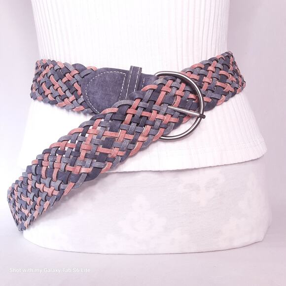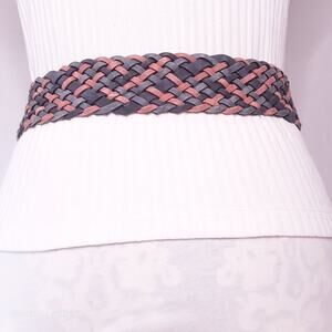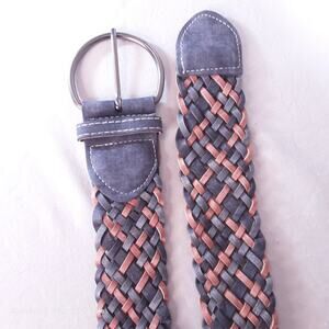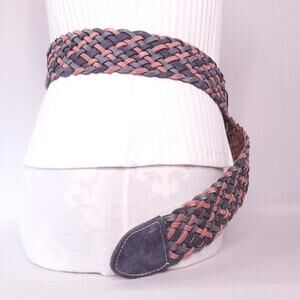 Womens Chunky Fashion Belt XL Waist Blue Brown Braided Faux Leather