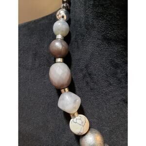 Women's Chunky Mixed Bead Statement Necklace Neutral Tones Lobster Clasp