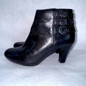 Women’s Clarks Artisan Black Leather 3” Heeled Booties Zip-Up Ankle Boots sz 5