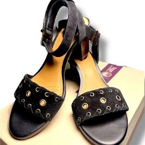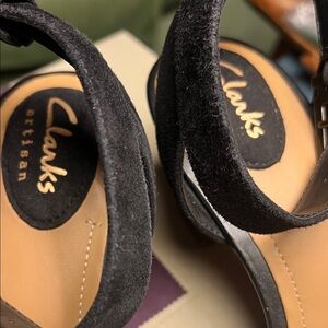 Women's Clarks Artisan Ralene Black Suede Ankle Strap Block Heel Sandals Size 7.5
