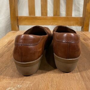 Womens Clarks Leather Loafers Everlay UMA Brown Slip On Comfort Shoes Size 7