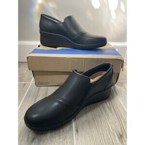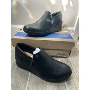 Women's Clarks Suttyn Zip Black Leather Loafers Size 9 M NIB Comfort Classic.