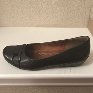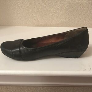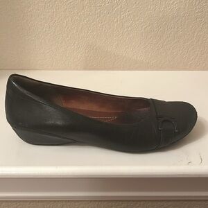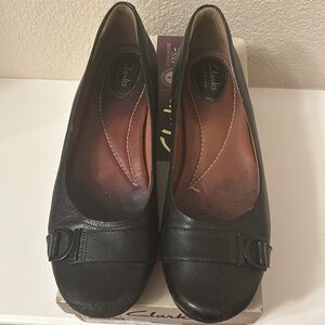 Women’s Clark’s black slip on shoes, size 9.
