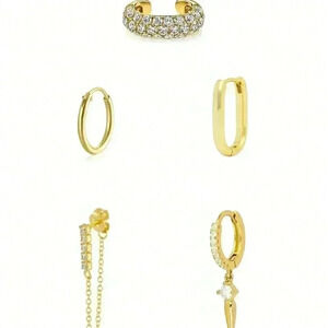 Women's Classic 24K Gold Plated Cubic Zirconia Hoop Earrings