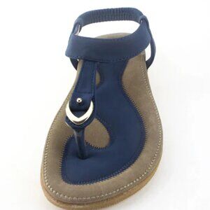 - On the backside of the foot, leather gives way to elastic to assure the position of the sandal even when active