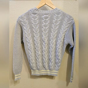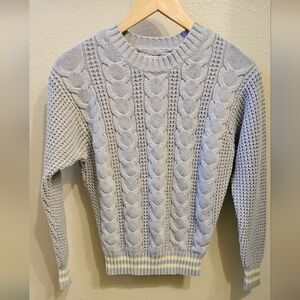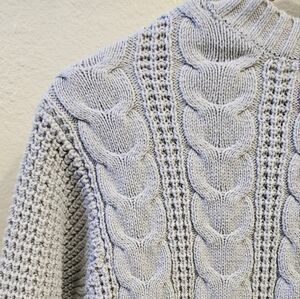 Elevate your wardrobe with this classic light gray cable knit sweater. Perfect for layering and versatile for any occasion.