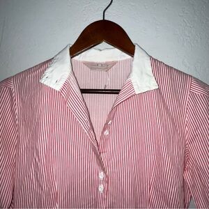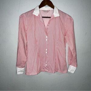 Women's Classic Directions Red & White Striped Button Down Shirt