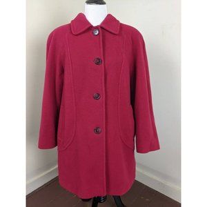 Women's Classic London Fog Red Wool Coat Petite Sz 14 Button Down Overcoat