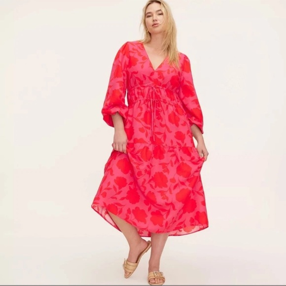 Women's Classic Rose Linen Long Sleeve Maxi Dress Kate Spade x Target XL