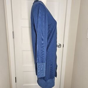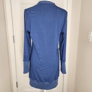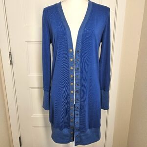 Stylish blue button-up sweater for women. Perfect for layering and adding a pop of color to your outfit.