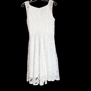 Women's Classic White Lace Sleeveless A-line Midi Minimalist Dress| Sz. L (EUC)