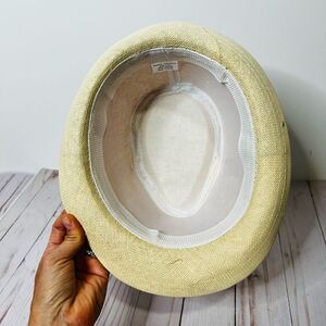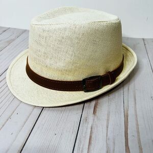 Women's Classic White Straw Federo Sunhats Trilby Brown Leather Belt Size L/XL