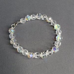 Womens Clear AB Aurora Borealis Beaded Bracelet Spring Ring Size 6 3/4 in