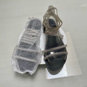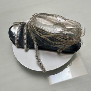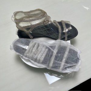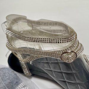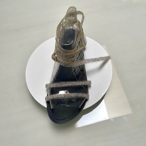 * Very sparkly flat sandals, clear straps with crystals