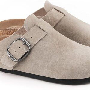 Product details Sole material Ethylene Vinyl Acetate Outer material Leather Closure type Buckle Water resistance level Not Water Resistant About this item 100% Genuine Leather Upper:Breathable and soft, provide ultimate comfort. Premium Suede Cork Insole:Lightweight and flexible, with good arch support and cushioning. Adjustable Metal Buckles:Perfect fit feet,suitable for every foot types. Non-slip EVA Outsole:Durable and has premium traction. Various Occasions:Suitable for indoors and outdoors, Lawn, park, dog walking etc. See more About this item
