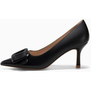 These 3 inches kitten heel pumps feature a classic pointed toe and square buckle design, make you stand out and feel confident in a crowd