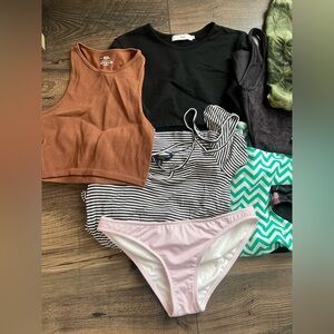-3 crop tops,2 tank tops,1 romper,1 skirt,2 bikini bottoms,1 short sleeve