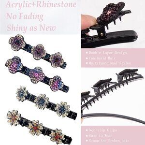 Crystal Hair Clips is made with Acrylic+Rhinestone Material, No Fading, Shiny as New forever. Double Layer Design,Can Braid Hair to make Multifunctional Styles Non-slip Clips, Easy to Wear and Grasp the Broken hair tightly.