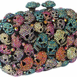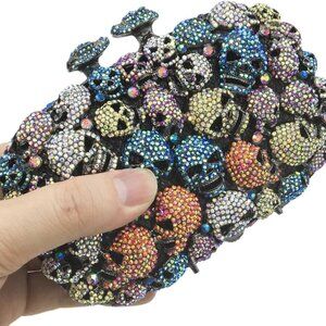 VERSATILITY - This cool skull rhinestone clutch comes with a pack of spare rhinestones and removable chain, you can choose the usage according to the convenience, like clutch, evening handbags, crossbody bags, shoulder bag...