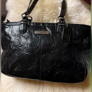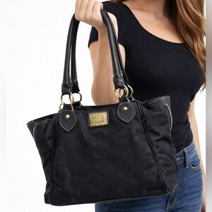 Women's Coach Black Signature Canvas Tote Bag One Size