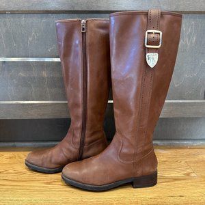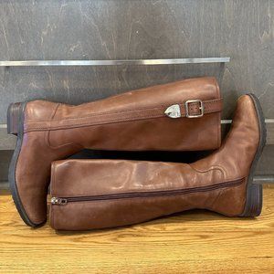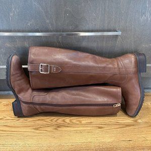 Womens Coach Easton Tall Tan Leather Buckle Zip Casual Riding Boots Size 6 B GUC