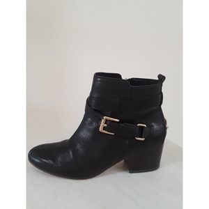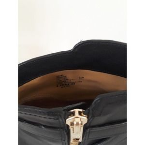 Womens Coach New York Pauline Leather & Suede Ankle Booties Emblem NWOT. These beautiful Coach Ankle boots feature a riding heal that is low rise ( just under 2 inches) and gold details. The outside of the shoe has black leather straps and gold buckles just under the ankles. It also features a gold colored zipper and a logo emblem at the back of the boot. The inside of the shoe shoes the product details including the Coach name, the line Pauline, and New York. The inside of the shoe is a tan suede. The bottom of the shoes clearly picture the Coach Emblem. These classy boots are in excellent condition. There are no spots, knicks, tears, or visable signs of use on the outside of the shoe. The bottom of the shoe is also in excellent condition. The shoes appear to have not been worn outside- as there is no dirt or grime. There is a minor color difference from the arch to the toes of the tan soles. These lovely leather heals look extremely classy and stunning. They will make a beautiful basic for early spring, fall, or winter. Let me know if you have questions.