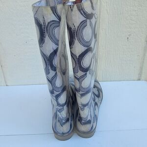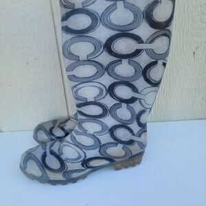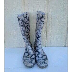 Women's Coach Pixy Signature Print Rubber Rain Boots Blk/White Sz 10