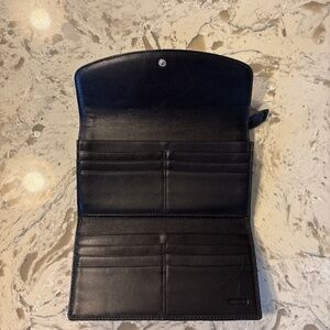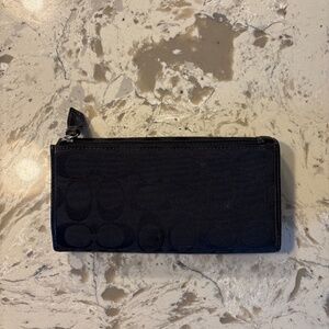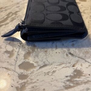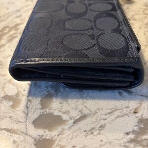 Women’s Coach Signature Black Canvas Tri Fold Wallet Cards ID Travel