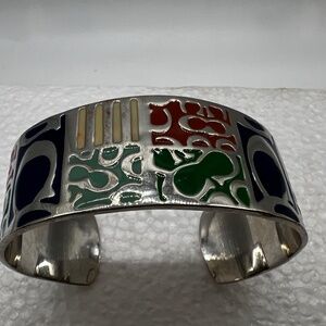 Women's Coach Wide Band Multi-Colored Silver Toned Cuff Bangle Bracelet Gift
