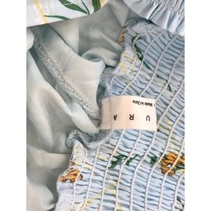Women's Coastal Dress Tie Back 3/4 Lantern Sleeve Square Neck Ruffle Size Medium