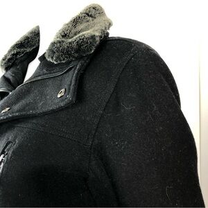 Women's Coat Black Michael Kors with Faux Fur Collar Wool Blend Sz Small