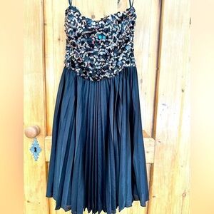 Women’s Cocktail Dress With Sequin Top and Black Pleated, Lined Skirt Size Small