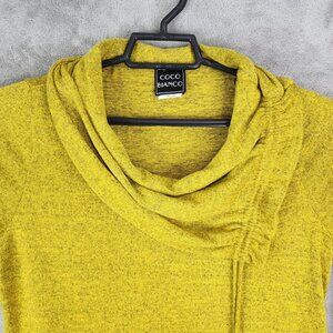 Women's Coco Bianco Yellow Asymmetrical Hem Tunic Top Cowl Neck Stretch Size L