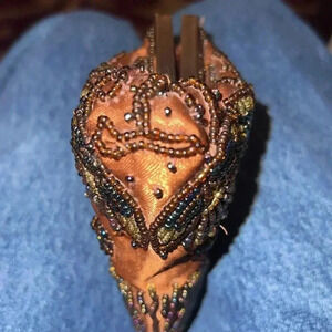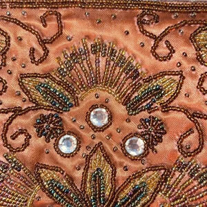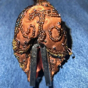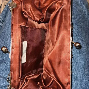 Women's Coco Brown Rhinestone, Iridescent Beads, with Silver Tone Hardware, kiss closure Purse or Clutch, Evening Bag. Chainlink Strap can be tucked inside or removed to make into a clutch. No holes, stains, or missing beads. Clean inside.