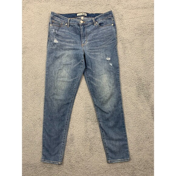Womens Code Bleu Denim Jeans 12 High Rise Flat Front Pocket Distressed