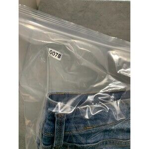Pre-owned; great condition. Intentional distressing on upper thigh below pocket. Manufacturer description describes RN# as high-rise, dark wash, and have a flat front pocket. See photos for accuracy to this description. No rips, tears or stains.