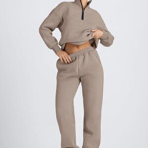Women's Coffeegrey Sweatsuit 2 Piece Loungewear for Fall