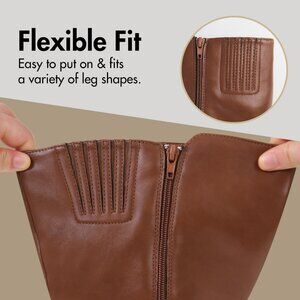 ⚡Women's Cognac Synthetic Extra Wide Calf Pull On Side Zipper Knee High Boots