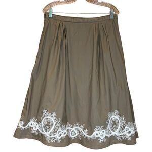 Women's Coldwater Creek Cotton Embroidered Skirt Tan, Size Medium (10-12), EUC
