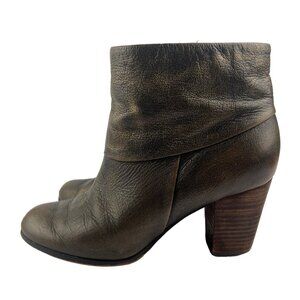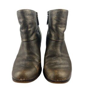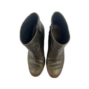 Women's Cole Hann Bronze Leather Side-Zip Stacked Heel Ankle Boots size 6.5
