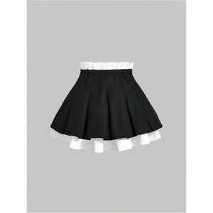 This chic mini skirt features a modern color block design with a double layer pleated style, perfect for a Y2k-inspired look. Ideal for casual outings or a night out.