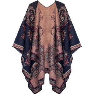Women's Color Block Shawl Wrap Open Front Poncho Cape