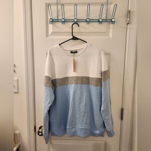 Womens Color Block Sweatshirt Pockets Blue White NWT Size XL #S484
