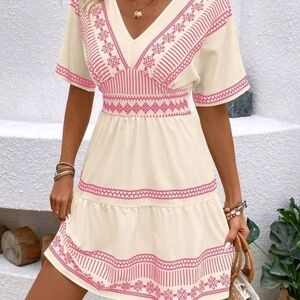 Women's Color-Blocking Printed V-Neck Simple Daily Dress