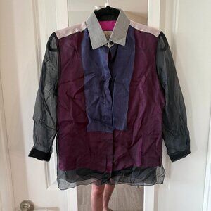 Women's Colorblock Button Up Crinckle Blouse Size 40 Color Black Pink