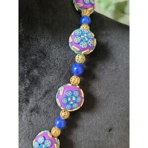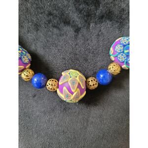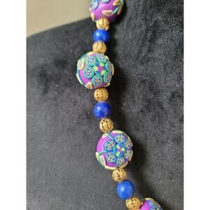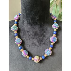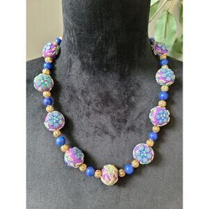 Women's Colorful Beaded Necklace With Polymer Clay Beads Lapis Beads Toggle Lock