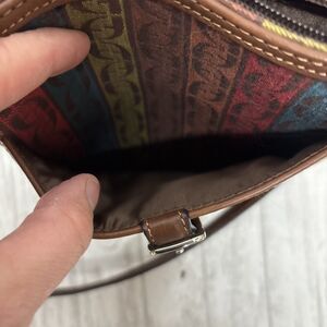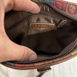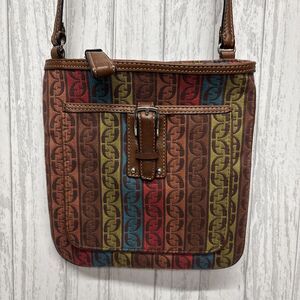 The product is a colorful Fossil crossbody bag designed for women. Made from canvas material with a multicolor exterior, this stylish bag is perfect for on-the-go use. Its compact size and crossbody style make it practical and convenient for everyday use. The colorful theme adds a fun and vibrant touch to any outfit, making it a trendy accessory for any fashion-forward woman.