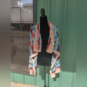 Womens Colorful Southwestern Bohemian Blanket Cardigan Size Medium Boho Festival